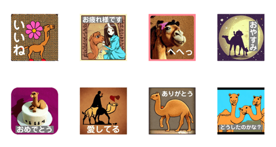 AIが描いたラクダの画像をラインスタンプにしました。ラクダさんが好きな人に使ってみましょう。