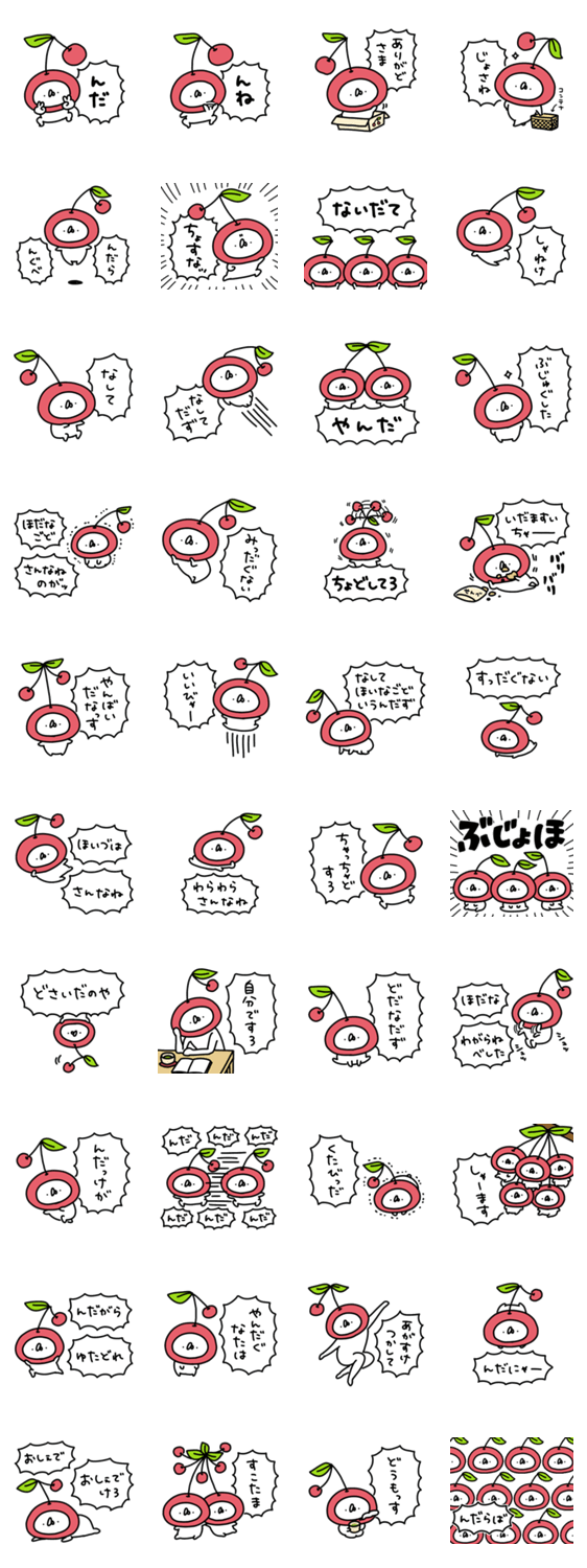 さくらんぼ帝国の日常です。早い話が山形弁。 ※過去に販売したスタンプ「さくらんぼ帝国」を最新の絵柄でリメイクしたものです。