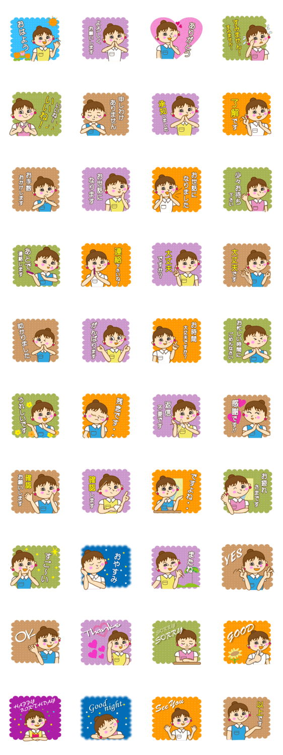 お友達と連絡、挨拶、お礼など、使いやすいスタンプです。よく使う言葉の日常会話です。
