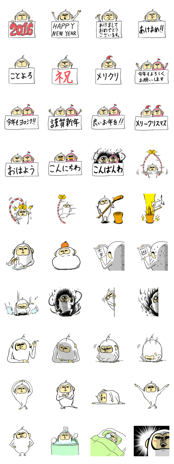 2016 険しい顔のサルのお正月 -LINEスタンプマニア