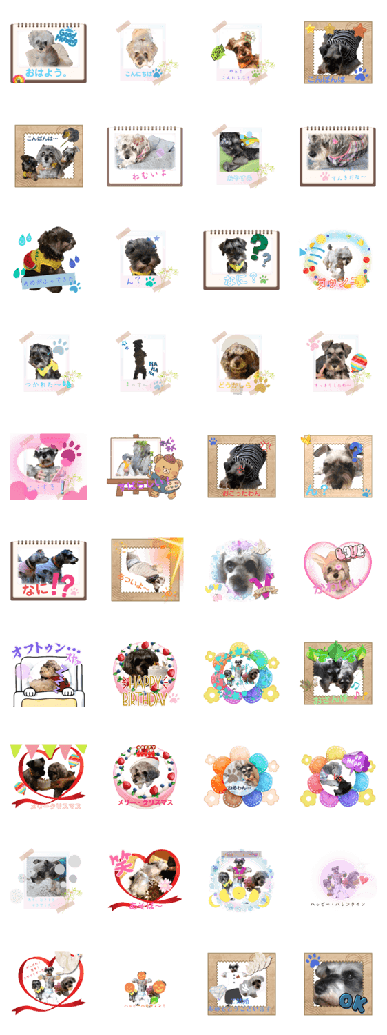 ぼくの家で飼っている犬「ミニチュアシュナウザー」の可愛い1年間を描いたスタンプです ぜひ、使ってみてください!