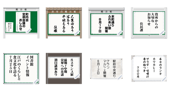 ポスターや町内会のお知らせを掲示するメッセージボードです。 現在この商品は一部のスマートフォン版LINE 10.3.0以上のトークルームでのみ使用できます。動作環境の最新情報はヘルプをご確認ください。
