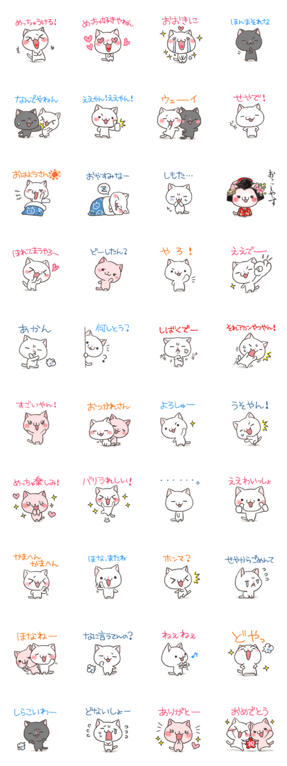 ねこの方言スタンプ関西弁編。大阪弁、兵庫県の神戸弁、奈良弁、和歌山弁、京都弁をあつめたよ。友達や家族や主婦の方、彼氏や彼女や恋人同士誰でも使えるスタンプ