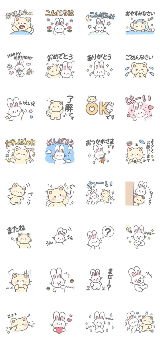 うさぎちゃんとねこちゃんの使いやすいスタンプです。
