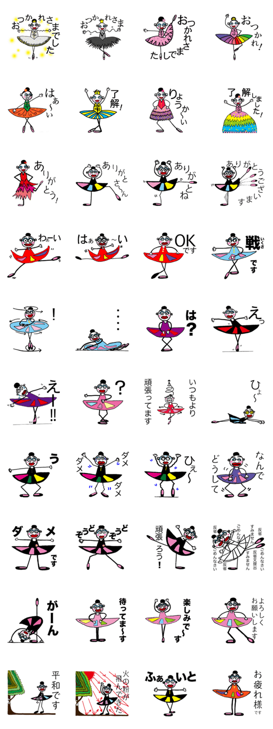 Happynなバレリーナの日常を描いたスタンプです。バレエのレッスンから発表会まで。