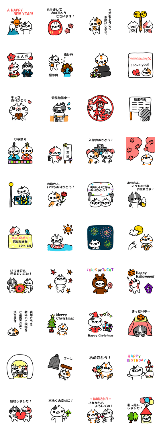 「ねこ好き」第2弾は、イベント・季節です♪誕生日、年賀状、結婚、成人式、入学式、母の日、敬老の日、ハロウィン、クリスマス、喪中、様々なお祝いにご利用ください。