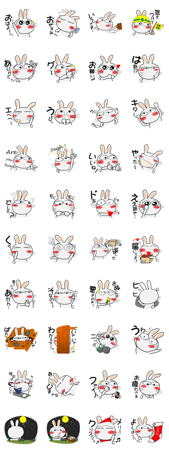 ほっこりする「うさぎサン」です。毎日よく使う言葉・シーンを集めてみました。今日も、明日も、明後日も、うさぎサンをヨロシク!