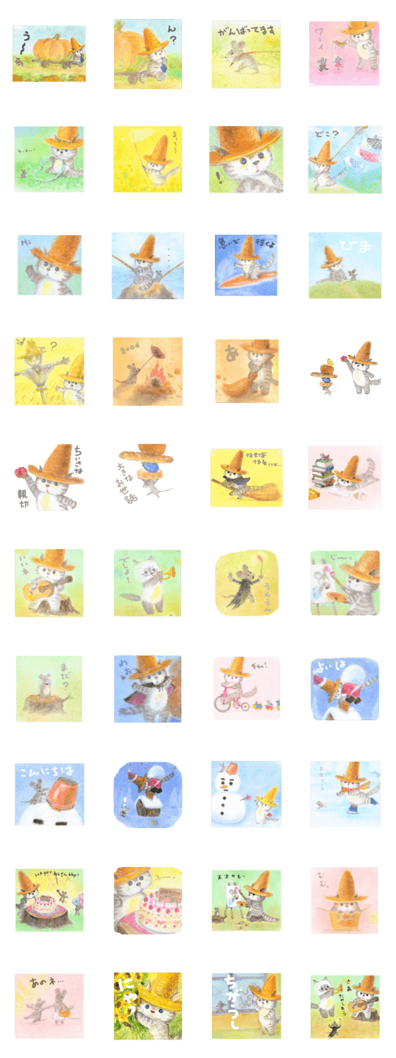 麦藁帽子をかぶった猫の四季です。