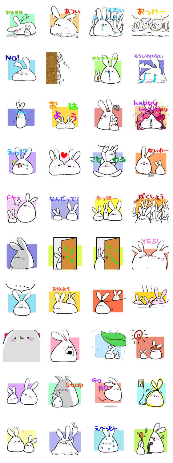たくさんのウサギがいろんな表情を見せてる。なんにでもどうぞ