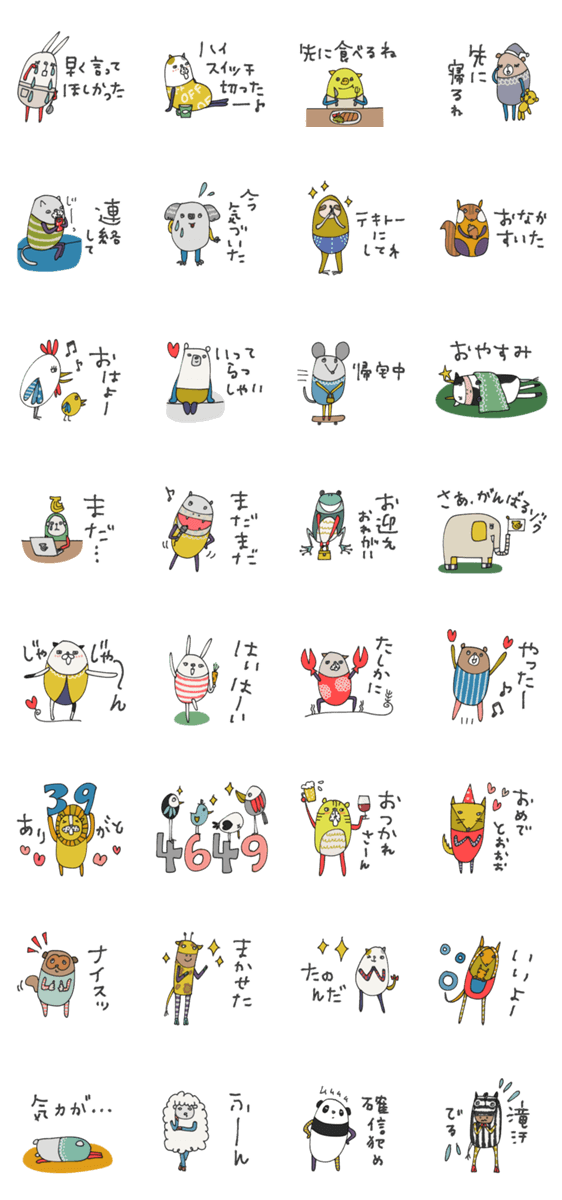 家族や友達にサクッと送れるスタンプできました♪個性豊かな動物達の毎日使えるセットです。