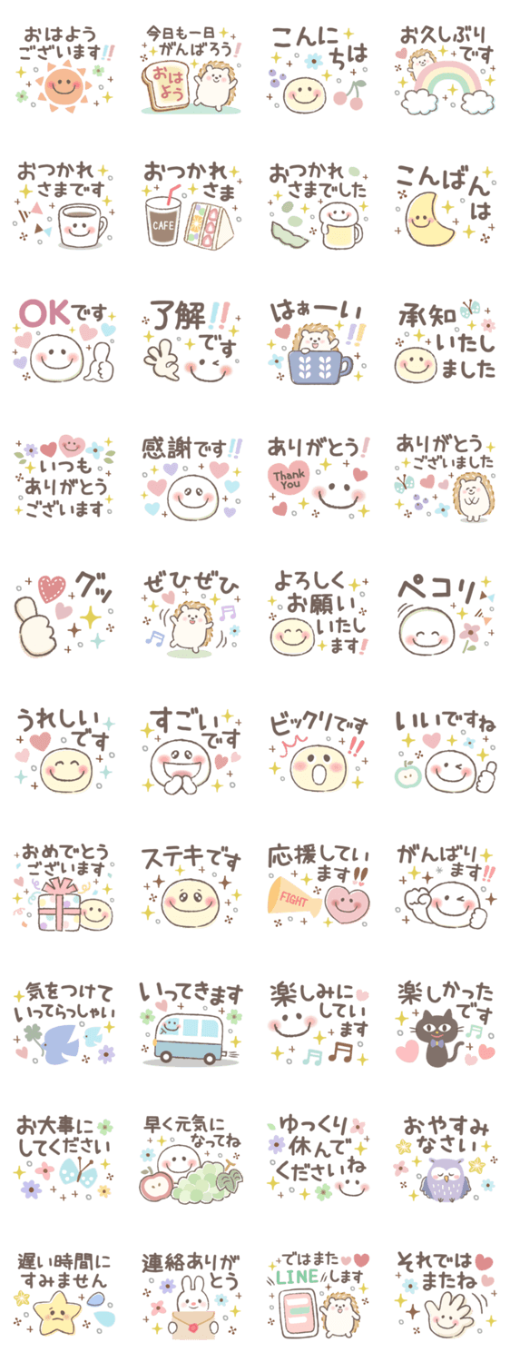 優しい気持ちが伝わる挨拶・敬語多め、北欧風でふんわり大人可愛い♡スマイルがいっぱい!元気&笑顔になりそう♪毎日使えるスタンプです。