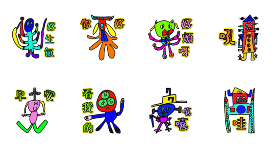 I am Kyle, I am 7 years old and this is my first try of drawing line stickers. This series includes 8 stickers and they are about universe monster.