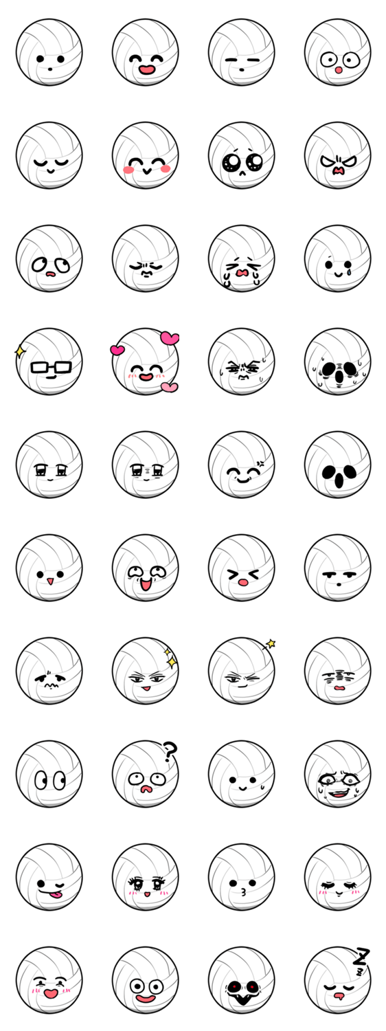 喜怒哀楽の顔がついたバレーボールのスタンプです。照れや煽りなどいろいろあります。バレー部好きな方にどうぞ。文字なしなので友達家族上司仕事先輩など汎用にどうぞ。