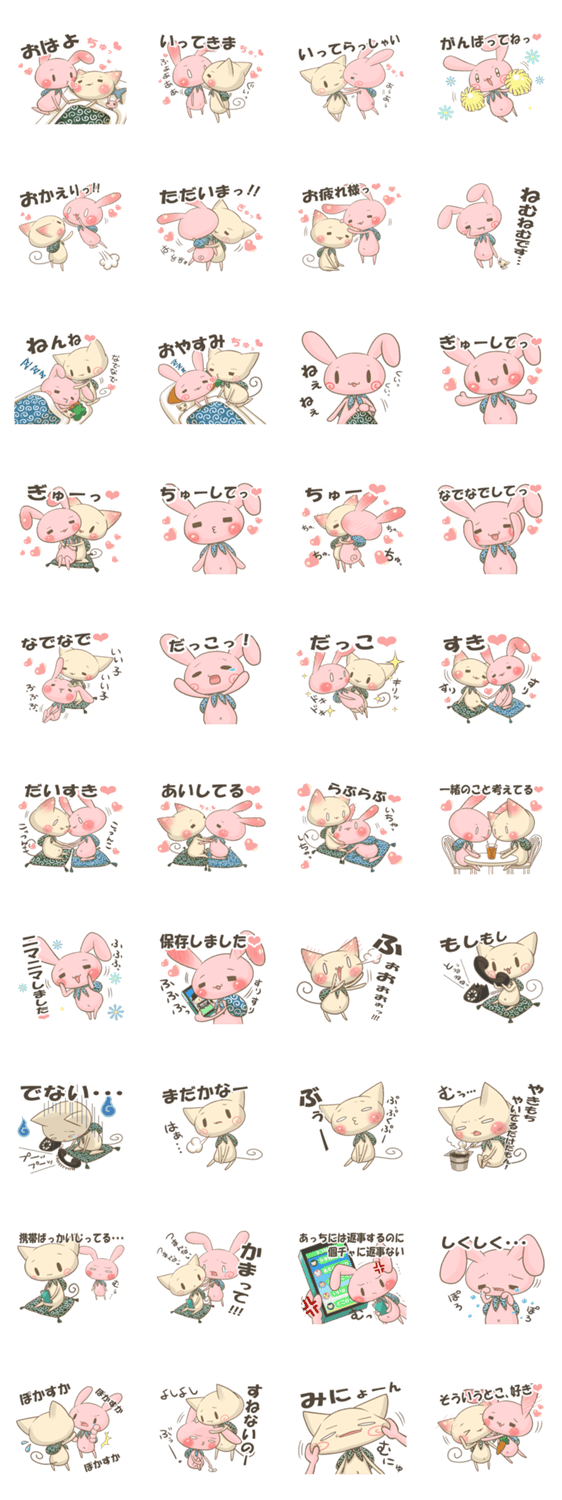 ぐるぐるほっぺが可愛い、猫と兎のスタンプ恋愛編1です。
