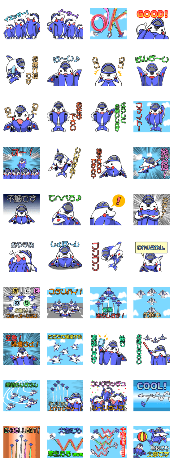航空自衛隊の航空機ブルーインパルスのドルフィン君日常会話スタンプ第二弾。飛行機好きにオススメ!