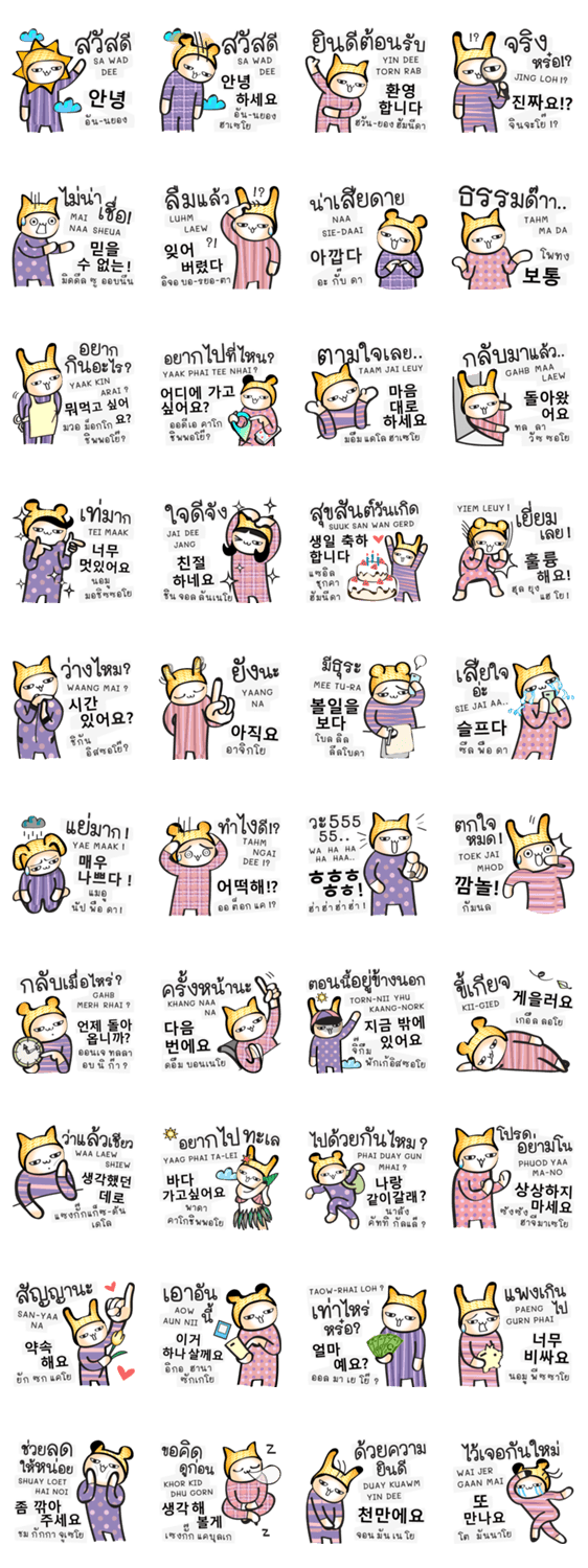 | スタンプ説明 | Korean-Thai (Revised Edition) Learn everyday words and phrases through chatting reading speaking. There are English- Thai romanization for spreaking practice. |