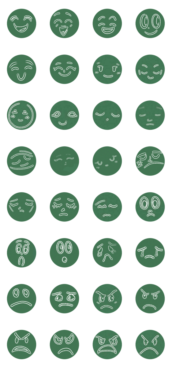 黒板に白チョークで描いた表情をマリモスタイルに。メッセージが無いので自由にお使いいただけます。