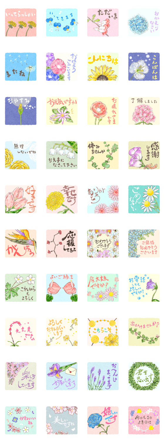 水彩ペンで描いた大人の可愛いお花スタンプです。 挨拶を丁寧な言葉で可愛くほっこりした手紙のようにしてみました。 日常に癒やしのお花をどうぞ。