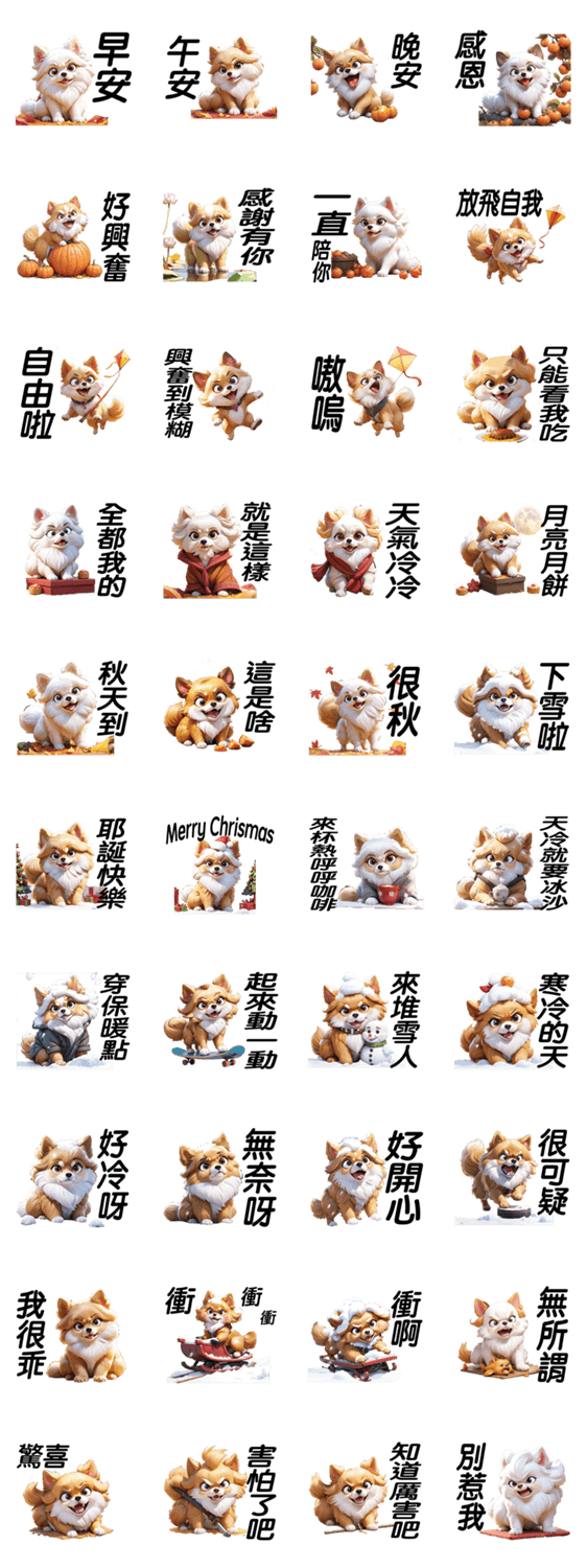 3Dのかわいいポメラニアン犬の秋冬 -LINEスタンプマニア