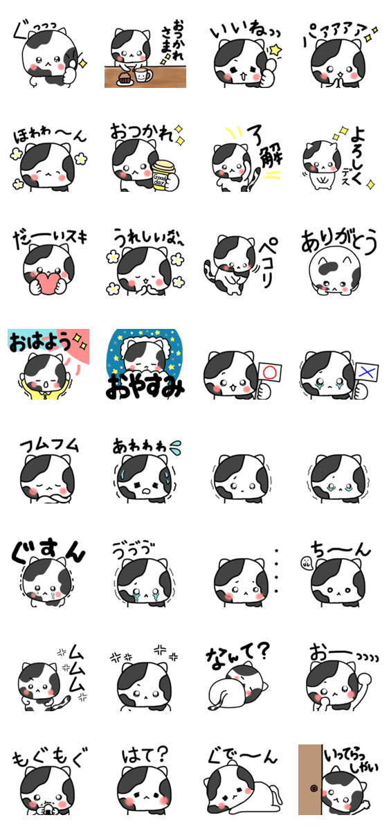 ねこちゃんの模様が牛に見える事から、うしねことなりました。 文字は大きめで見やすくなってます。日常スタンプ シンプル/キュート/猫/動物