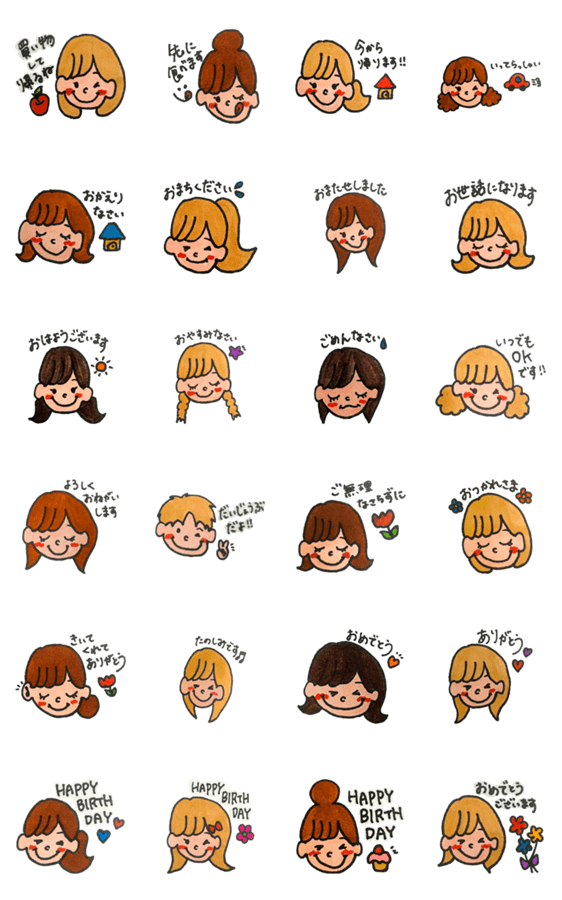 毎日使える暮らしの手描きLINEスタンプです。相手へ送るメッセージにぜひ。