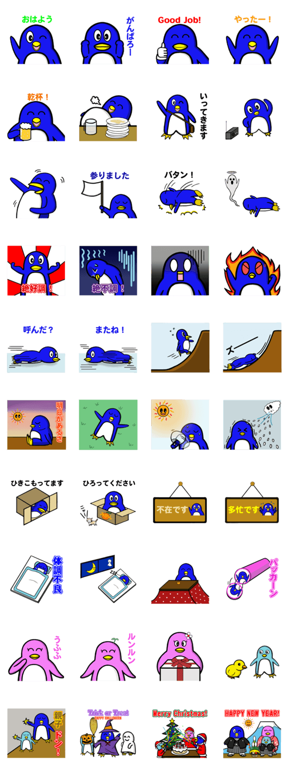 ペンギンのペックンによる日常物語のスタンプです。喜怒哀楽や季節イベント(ハロウィン、クリスマス、お正月)もあるので、笑えたり楽しい気分になります。