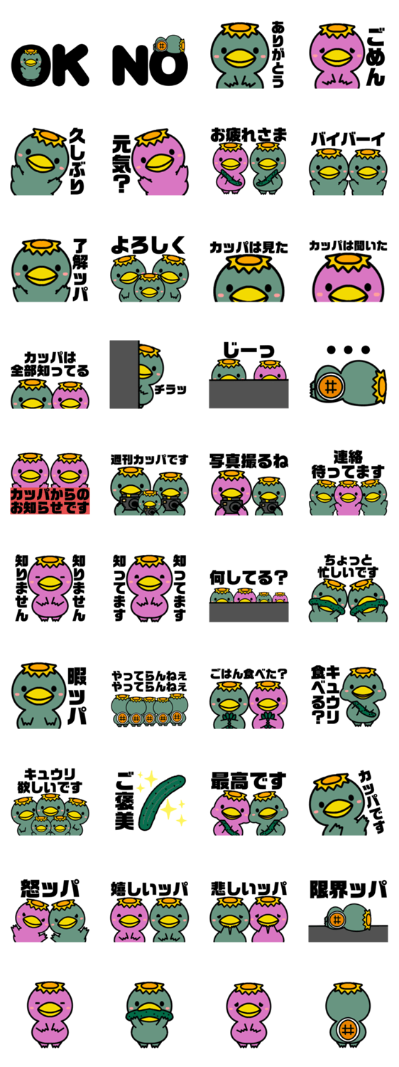 キュウリ大好きなカッパのLINEスタンプです!家族やお友達との会話にカッパも仲間入りさせてあげて下さい!