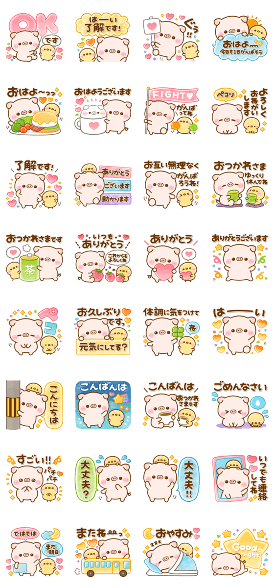 こぶたのぽこちゃんの毎日使える優しい水彩カラーのスタンプです。