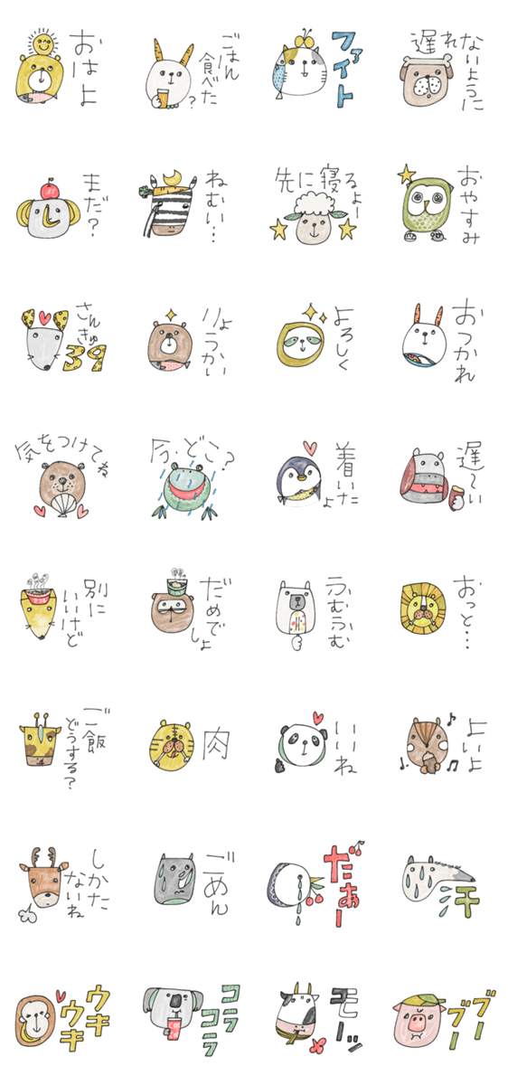 個性豊かな動物達の連絡用スタンプできました♪華奢だけど見やすいデカ文字です。