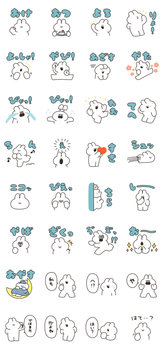 短い返事をするうさぎのスタンプです。