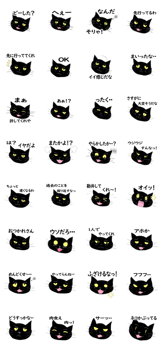 ふてぶてしくも可愛らしい黒猫が、自由気ままにセリフを吐き散らすスタンプ第3弾です!