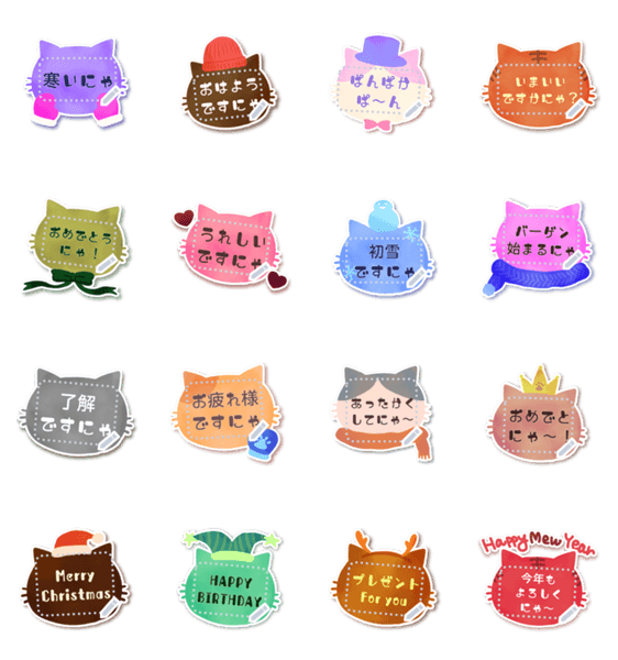 メッセージが書き込めるメッセージスタンプ♪可愛いにゃんこフレーム♥猫好きさんにプレゼントするのも◎♪マフラー・手袋・リボン・冬のクリスマスやハッピーニューイヤー 現在この商品は一部のスマートフォン版LINE 10.3.0以上のトークルームでのみ使用できます。動作環境の最新情報はヘルプをご確認ください。