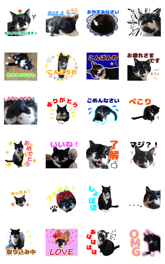 背景透過できていなかったので、修正しました。 おじさん猫 ボブの日常使いを意識したスタンプです。