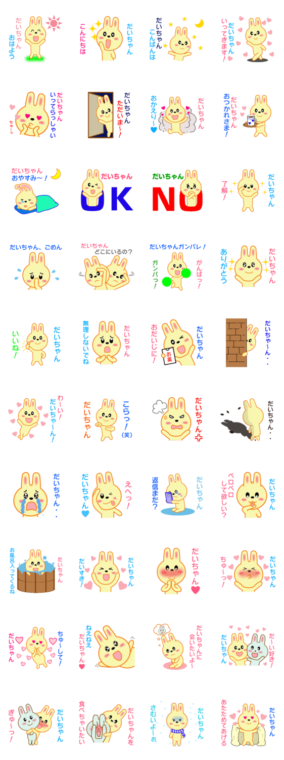 「だいちゃん」に送信するため用スタンプ!「だいちゃん」に送信する際に使うことで、だいちゃんに喜ばれ、より自分の想いをより伝えられること間違いなし!