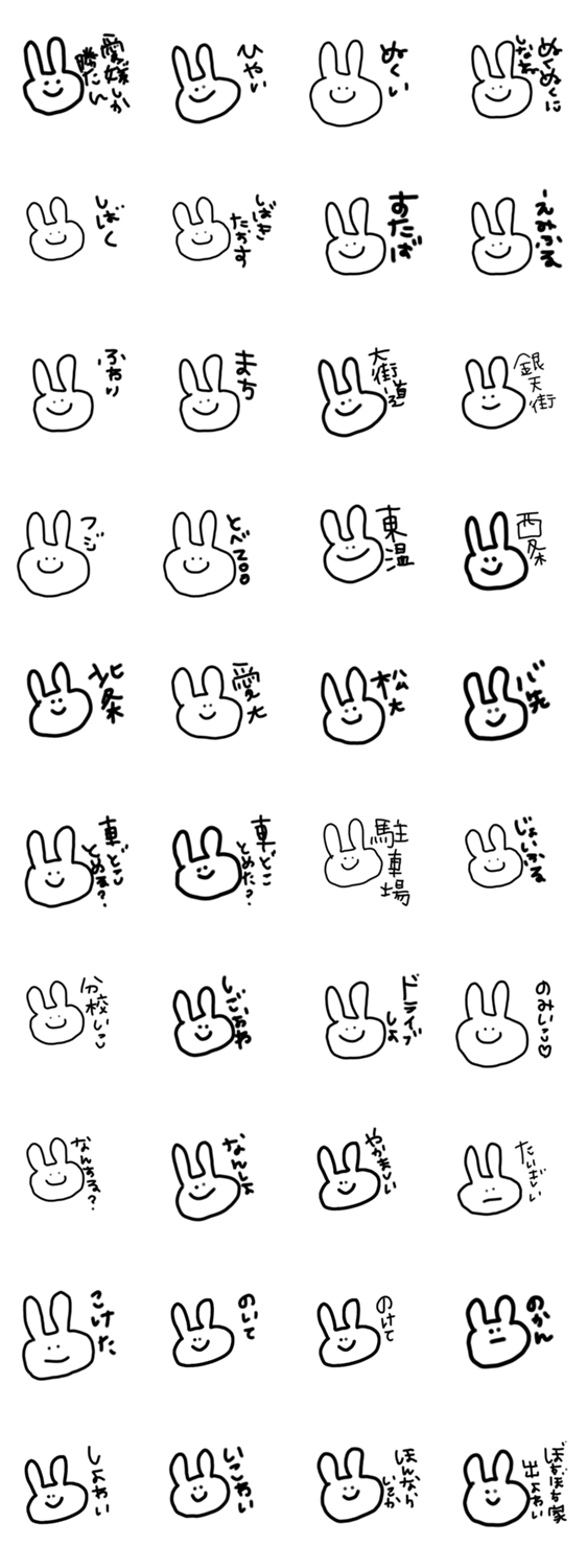 伊予弁うさたんスリー愛媛でよく使う行き先 -LINEスタンプマニア