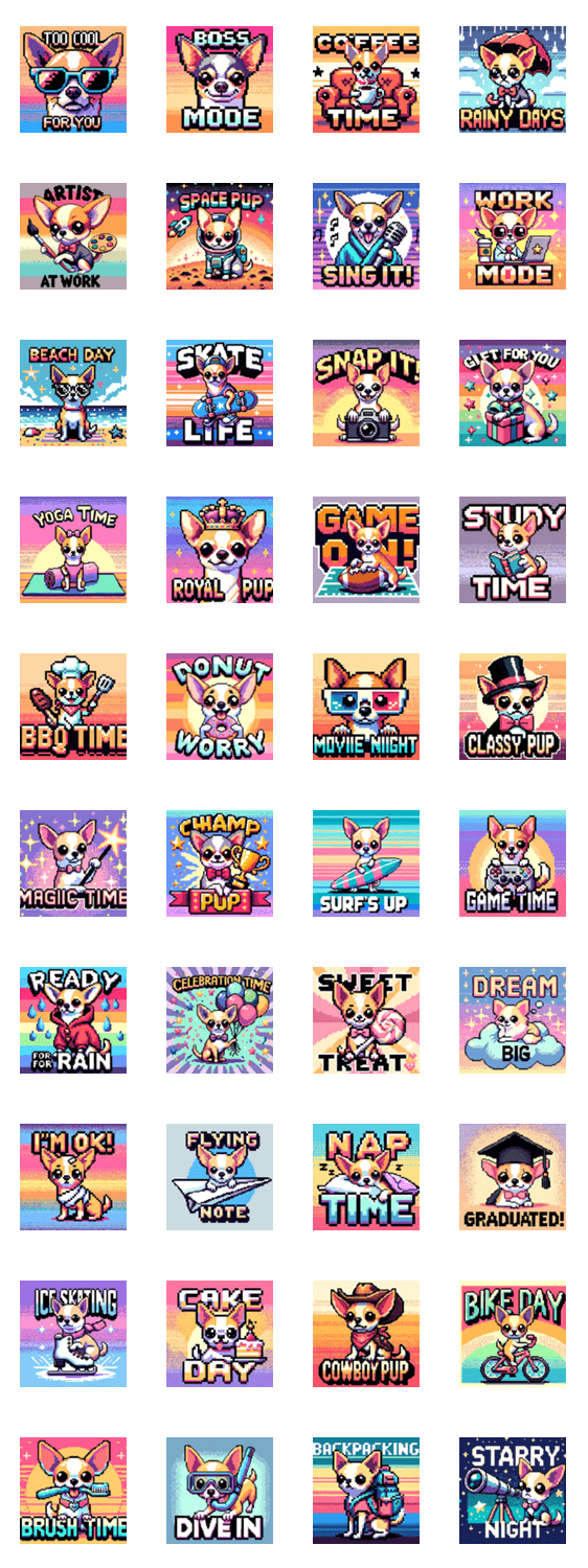 ピクセルアートのチワワのかわいくてユニークな世界を体験してください!あらゆる気分やメッセージに最適です。