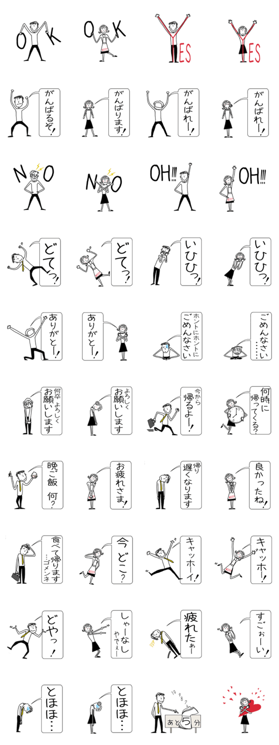 言葉なしでも通じ合う、夫婦間で大活躍のスタンプ!嫁・旦那間でよくあるやりとりを可愛いスタンプにしてあるので毎日の連絡をすばやく行えます♪