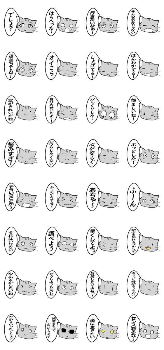 可愛らしい猫が、ふきだしで一言セリフを伝えるスタンプ第14弾です!普段の何気ない日常会話にお使いください!