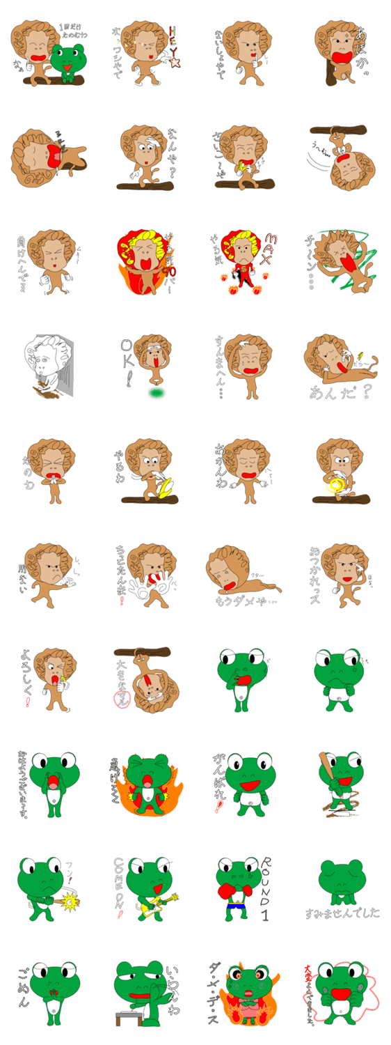 ケノ山春治に新たな仲間、お猿のもん吉が加わった日常スタンプです。