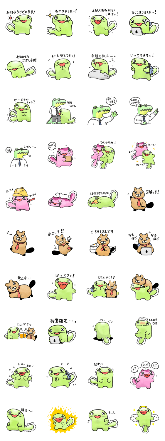 東京で暮らす、サンショウウオの日常のスタンプです 挨拶、リアクション系多めになってます