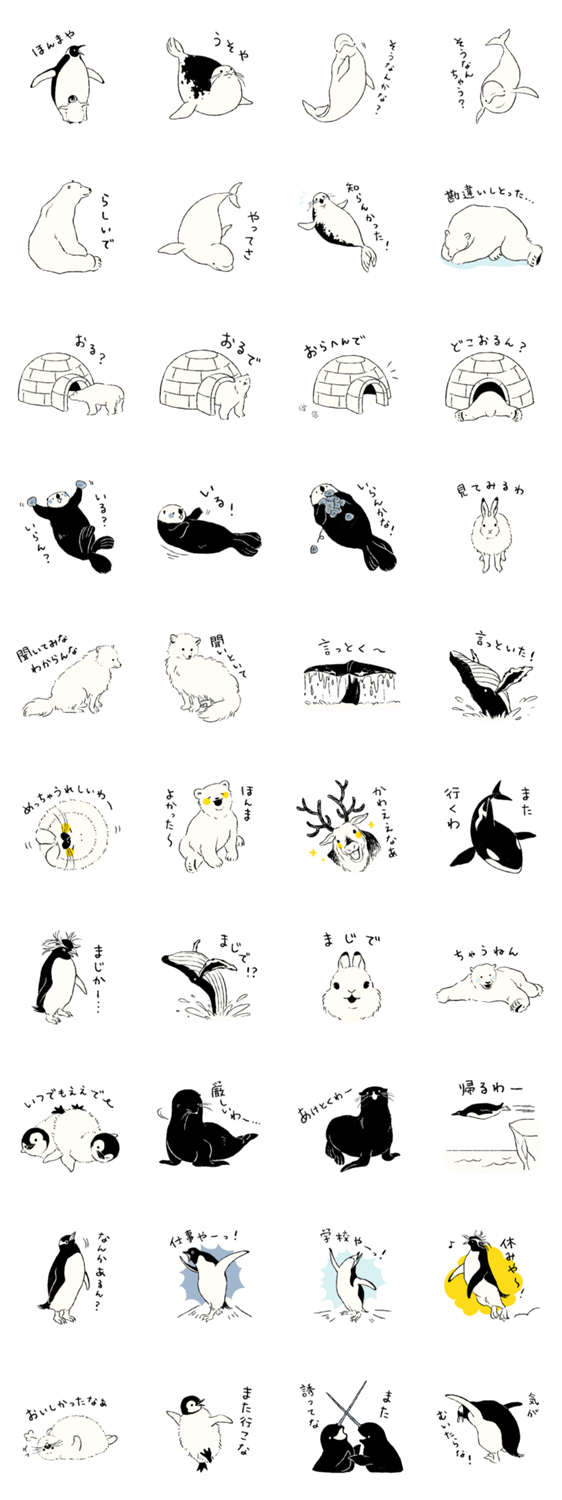 シロクマやペンギン,ベルーガ,アザラシなどなど極地で生きる動物たちが関西弁で代弁してくれるスタンプの第三弾です(・∞・⊃ )3(・∞・⊃ )3(・∞・⊃ )3