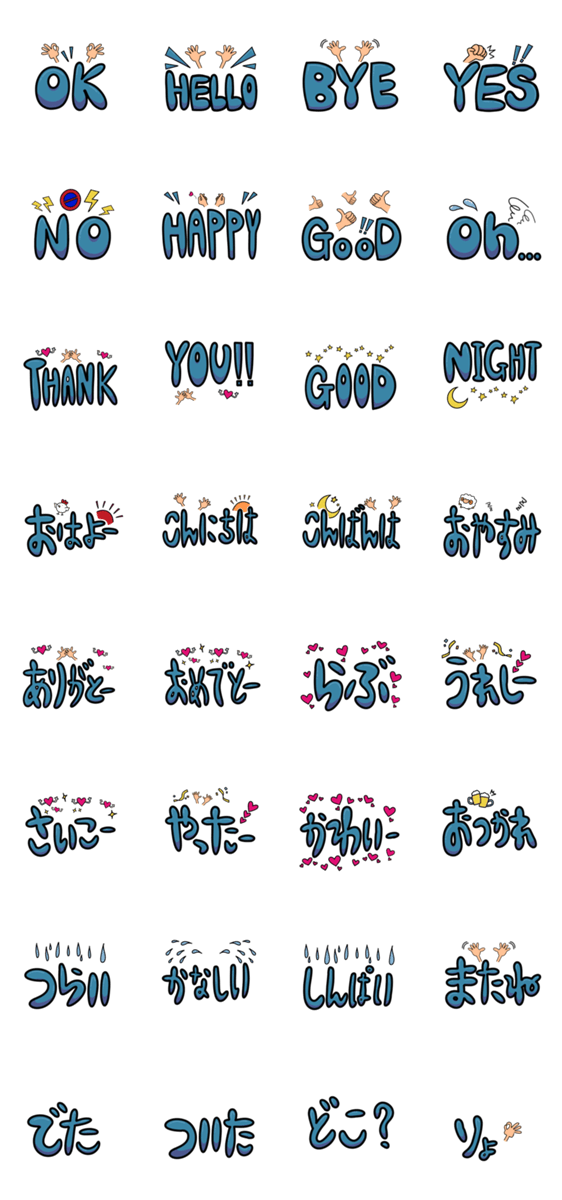 シンプルに文字で伝える。全7色〜青〜 -LINEスタンプマニア