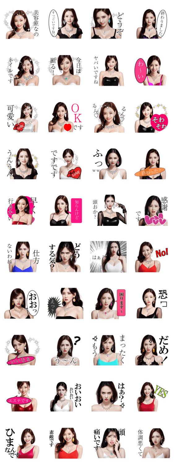 おしゃれで魅力的なホステスとキャバ嬢の世界を表現した、必携のスタンプです。シックなルックス。そして心躍るフレーズが、あなたのチャットを一瞬で華やかに変えます。