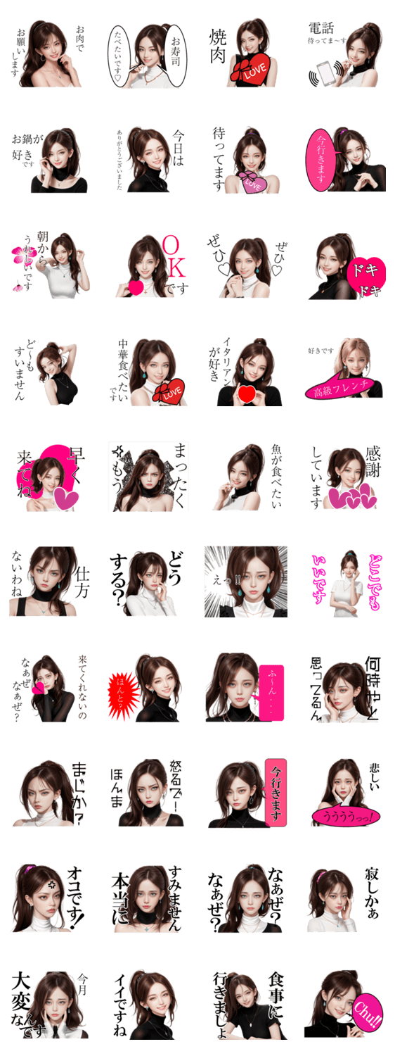 おしゃれで魅力的なホステスとキャバ嬢の世界を表現した、必携のスタンプです。シックなルックス。そして心躍るフレーズが、あなたのチャットを一瞬で華やかに変えます。