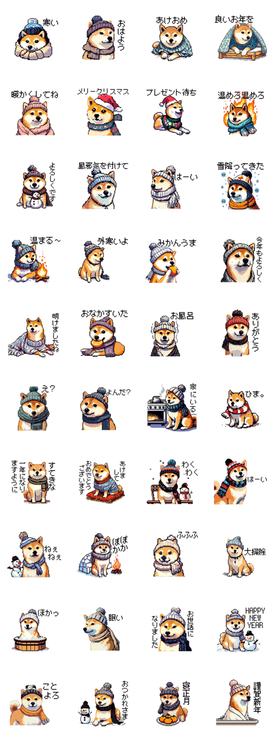 ドット絵 冬の柴犬 40種 -LINEスタンプマニア