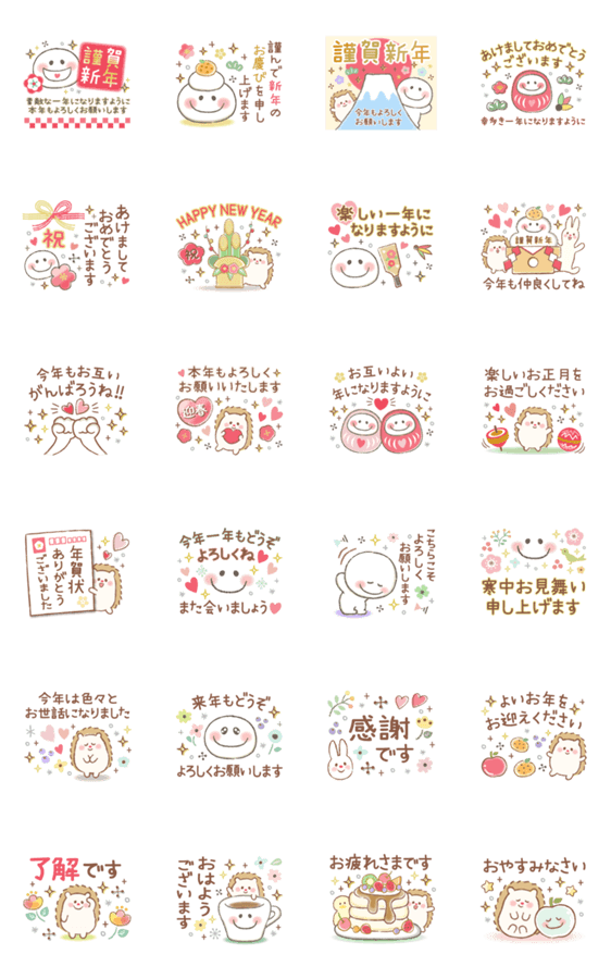 年末年始と日常も入った盛り沢山な、ふんわりやさしいスマイルのあけおめ動くスタンプです♪2023あけおめスタンプの再販になります