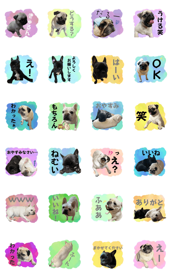 Y家のパグとフレブルたちの日常をスタンプにしました!