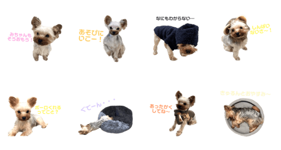 らぶりーなヨークシャーテリア、みちゃんのスタンプだよ。