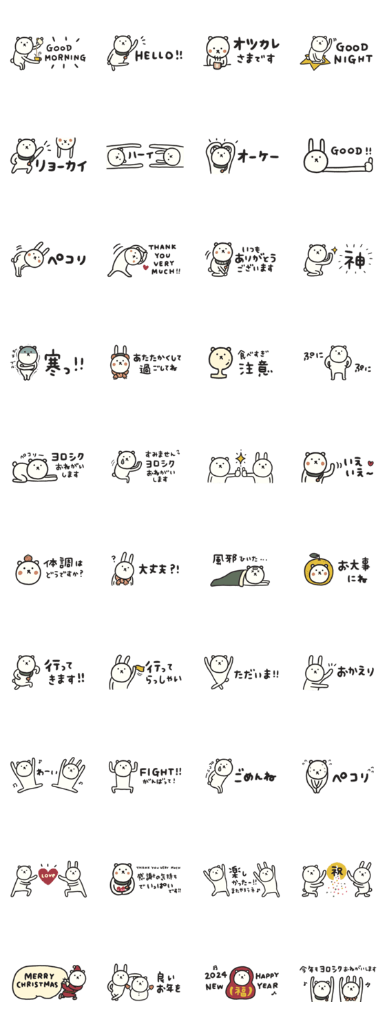 のっぽくまと、のっぽうさぎの省スペーススタンプ。 冬/省スペース/クリスマス/年末年始