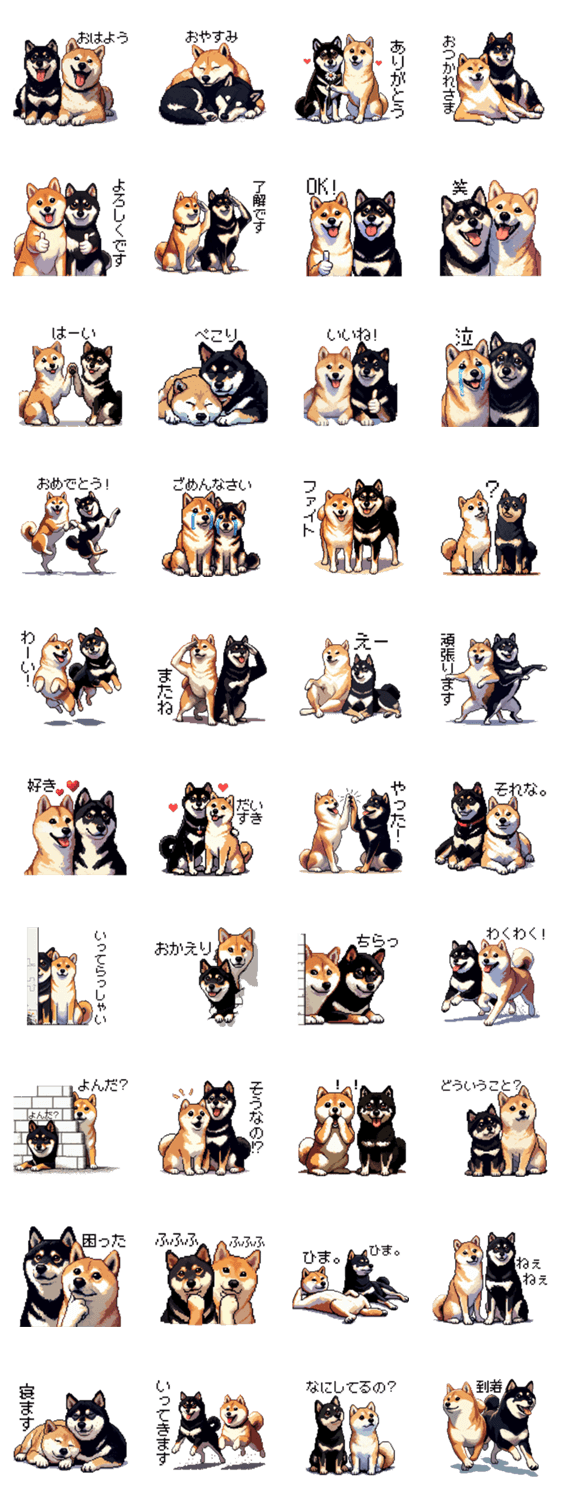 ドット絵 なかよし 柴犬 黒柴 40種 -LINEスタンプマニア